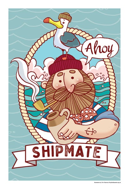 Bright and colourful 100% cotton Tea Towel with the words, 'Same ship, different day!'